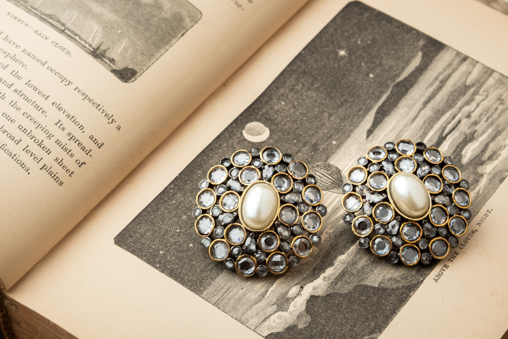 These statement uncut polki with pearl in oxidized polish will give a complete Victorian look. Pair them with your western, Indian and fusion wear.
